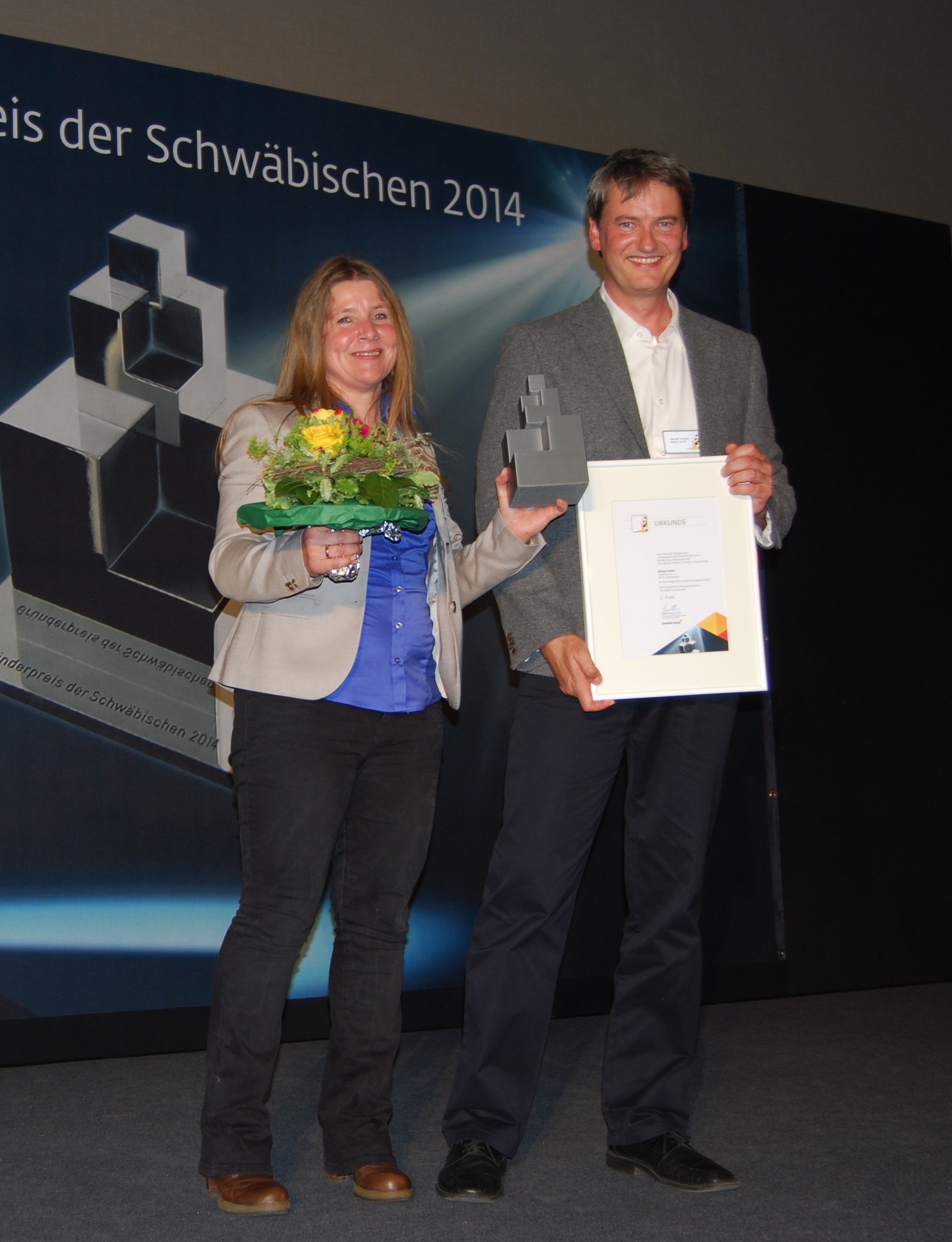 Bild 1: Die Multec Gründer Petra Rapp und Manuel Tosché freuen sich über den zweiten Platz des Gründerpreises der Schwäbischen 2014.